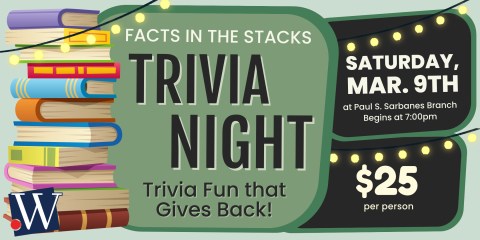 Become a Question Sponsor for the next Facts in the Stacks Trivia Night fundraiser. Visit www.wicomicolibrary.org/facts-stacks for more information!