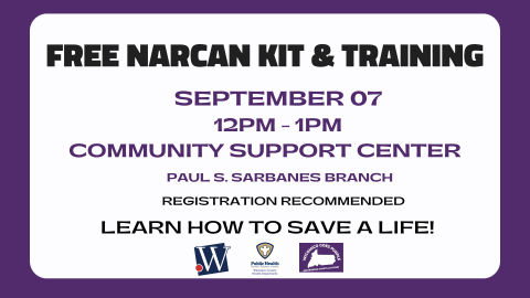 A representative from the Wicomico County Health Department will explain how to detect an opioid overdose and how to use Narcan to reverse an overdose. Registration is recommended.