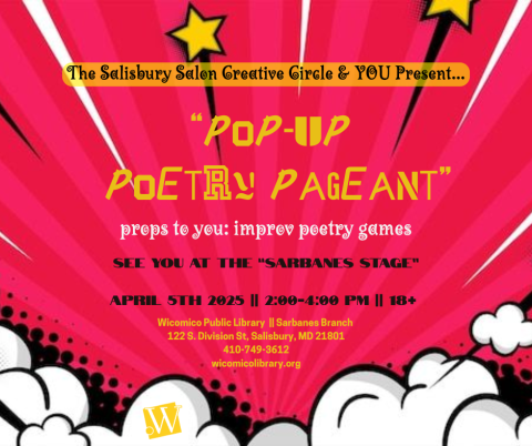 The Wicomico Public Library's Sarbanes Branch presents "The Salisbury Salon Creative Circle" -- A novel take on Enlightenment-period literary & artistic salons, The Salisbury Salon aims to be a welcoming space for ALL to engage in hearty discussion, activities, and share personal creative projects (usually over light refreshments). NO REGISTRATION/NOR PRIOR ATTENDANCE REQUIRED! :)