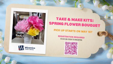 April Showers are bringing Spring Flower Bouquets for you to make. Reserve your Take and Make Kit to make several colorful tissue paper flowers. All materials will be provided.
